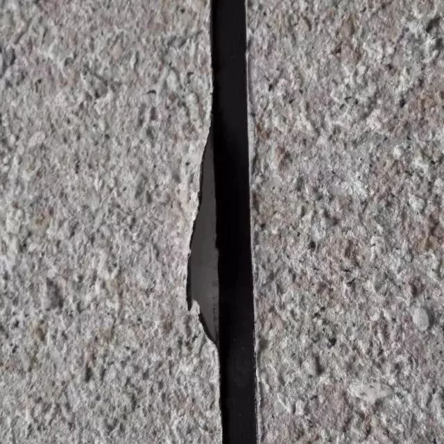 仿石漆中涂干燥后,漆膜較厚,柔韌性較高,在撕除美紋紙時,破壞了仿石漆膜的完整性,熱漲伸縮時,漆膜與膩子層的伸縮比差異較大,導致出現分格線邊緣開始翹起分層。